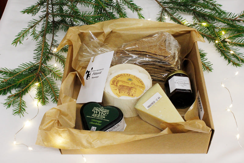 Juustosopin juustovalikoima tarjoaa kolmen erilaisen juuston täydellisen yhdistelmän, joka hurmaa sekä pehmeällä että täyteläisellä maullaan. Juustojen rinnalla tarjoillaan makeaa kirsikkahilloketta, joka tuo kivaa kontrastia ja joulun makua juustoihin.