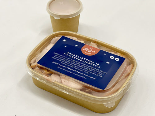 Puolukkamajoneesi tuo makuun suomalaisen joulun raikkaan ja marjaisen vivahteen, joka täydentää savukalkkunan suolaista makua herkullisesti. Yhdessä ne muodostavat täyteläisen, mutta raikkaan makuparin, joka piristää juhla-aterian kokonaisuutta.